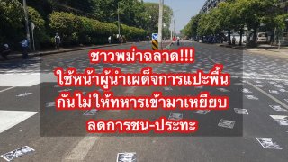 พม่าฉลาด ใช้หน้าผู้นำเผด็จการแปะพื้น กันไม่ให้ทหารเข้ามาเหยียบ-ลดการปะทะ