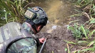 กองกำลังบูรพา เดินหน้ากวาดล้างทุ่นระเบิดบ้านหนองหญ้าแก้ว พบเพิ่มอีก 2 ลูก รวมสะสมแล้ว 7 ทุ่นในรอบสัปดาห์