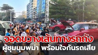 เช้านี้รถเสีย! ประชาชนย่างกุ้งพร้อมใจกันรถเสีย จอดขวางเส้นทางรถถัง