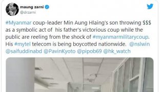 ลูกชาย "มิน ออง หล่าย" โปรยเงินแจกผู้คน