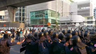 ตำรวจ 9 นายบาดเจ็บ เหตุชุลมุนหน้าสถานทูตเมียนมา 2 นายต้องแอดมิท เยื่อแก้วหูฉีกขาด ใต้เข่าขวาฉีก แผลเปิด!!