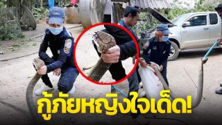 กู้ภัยหญิง ใจเด็ด!! จับงูจงอางซุกฝากระโปรงรถ