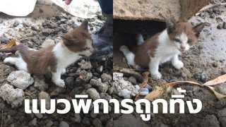 สุดสงสาร!! แมวน้อยพิการ ถูกทิ้ง คลานหาของกินด้วยความหิวโซ