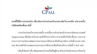 ซีพีออลล์แจง!! แมสก์ 6 บาท ไม่ใช่หน้ากากอนามัยทางการแพทย์ ที่ต้องคุมราคา 2.50