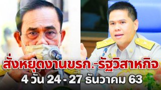 ด่วน!! ‘บิ๊กตู่’ ไฟเขียว ข้าราชการ-รัฐวิสาหกิจ Work From Home 4 วัน 24 - 27 ธันวาคม 2563 นี้