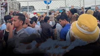 ชาวกัมพูชาโวย! แรงงานนับพันปิดถนนอัมพาต การจราจรยาวหลายกิโลเมตร