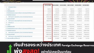 เงินสำรองระหว่างประเทศของไทย พุ่งสูงสุด! อย่างไม่เคยเป็นมาก่อน ที่ 280,000 ล้านUSD เป็นครั้งแรกในประวัติการณ์!!