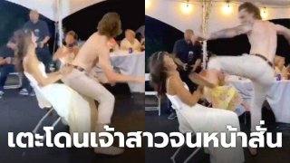 งานแต่งแทบล่ม! หลังเจ้าบ่าวเต้น ทำท่าจระเข้ฟาดหาง โดนเจ้าสาวจนหน้าสั่น (มีคลิป)