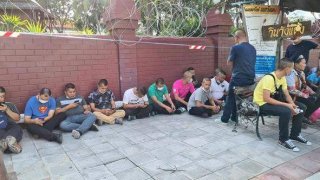 กลุ่มชายหัวเกรียน ปักหลักที่กำแพงวังแดง โดยไม่ระบุว่าทำรวมตัวกันเพื่ออะไร