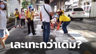 เละเทะกว่าเดิม? กลุ่มเสื้อเหลืองออกมา ทาสีขาวทับ ชาวเน็ตแนะ ทำไมไม่ให้ จนท.ทำ หรือทาสีดำ?