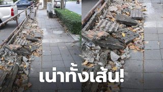 นี่คือฟุตบาท ถนนรัชดา ย่านกลางเมือง เน่าทั้งเส้น ระยะทางหลายกิโล !! สำนักงานเขตดินแดงแจง รับทราบแล้ว