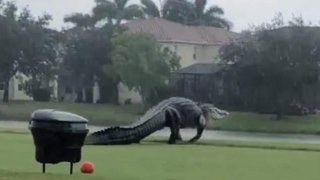 นึกว่า 'ก็อตซิลล่า' พบจระเข้ยักษ์เดินเล่นอวดโฉมกลางสนามกอล์ฟชื่อดังในรัฐฟลอริดา (มีคลิป)