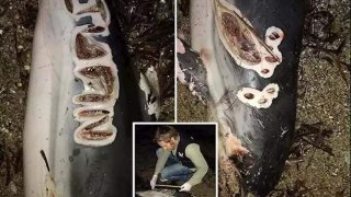 น่าสยดสยอง พบซากโลมาหัวขาด ตัวขาด ร่างกายถูกสลักชื่อ Juan บนชายหาดของสเปน