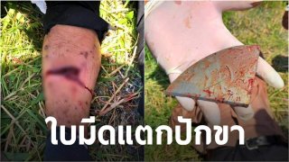 เตือนภัย !!ใบเครื่องตัดหญ้าโดนหิน ทำให้แตกกระเด็นบาดขาแผลลึกฉกรรจ์กระดูกแตกหวิดขาด