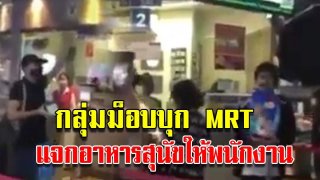 กลุ่มม็อบ บุกเข้าสถานีรถไฟฟ้า BTS แจกอาหารสุนัขให้พนักงาน