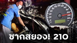 ซากสยอง!! เก๋งพุ่งชนเสาไฟฟ้าพังยับ แหลกเละเป็นซาก เข็มไมล์ค้าง 210 คนขับดับคาพวงมาลัย