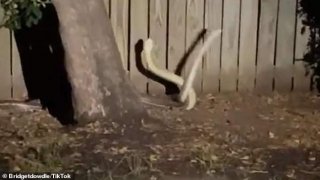 เซอร์ไพรส์แรง!! หญิงออสซี่ถึงกับหลอนกลางดึก หลังพบงูตัวผู้เปิดศึกชิงนางในสวนหลัวบ้าน (มีคลิป)