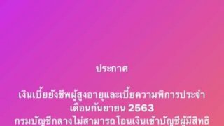 เงินผู้สูงอายุ - คนพิการ เดือนกันยายน 63 "ทำไมจ่ายเงินให้ไม่ได้" เพราะอะไร ถึงไม่มีเงินจ่าย