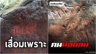 ภาพฝีมือ นทท. มือบอนขีดเขียนก้อนหิน ถ้ำนาคา ก่อนสั่งปิด