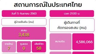 ไทยพบผู้ติดเชื้อโควิด-19 เพิ่ม 6 ราย จากต่างประเทศ รวมป่วยสะสม 3,444 ราย