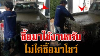 "รถใช้งาน" หนุ่มใช้ท้ายรถกะบะผสมปูน
