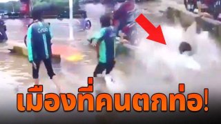 หนุ่มแกร๊บเดินตกท่อ หลังน้ำท่วมขัง คาดกทม.ไม่ได้ปิดฝาท่อ