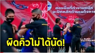 ผิดคิวไม่ได้นัดกัน ชายชุดดำบุกเวทีสมัชชาแรงงาน ฉุดประธาน สหภาพฯ ระหว่างปราศรัย