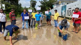 ชาวบ้านประชด ดำนา...บนถนน