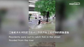 น้ำท่วมอู่ฮั่น มีปลาหลุดออกมาเป็นจำนวนมากตามท้องถนน ชาวบ้านแห่ออกมาจับปลาอย่างสนุกสนาน