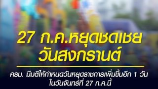 ครม.มีมติให้วันที่ 27 ก.ค. เป็นวันหยุดชดเชยสงกรานต์ ทำให้มีวันหยุดยาว4 วัน (25-28 ก.ค.)