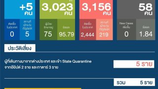 พบผู้ป่วยโควิดใหม่ เพิ่ม 5 ราย เป็นผู้ป่วยที่มาจากต่างประเทศทั้งหมด