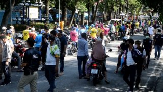 วิน จยย. แห่รับเงิน จากนายอำเภอ