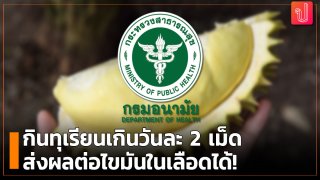 กรมอนามัย ชี้! กินทุเรียนเกินวันละ 2 เม็ด เสี่ยงต่อปริมาณน้ำตาลและไขมันในเลือดได้