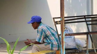 ชายพิการ 29 ใช้หัวเข่าเดินแทนเท้า ใช้มือที่หงิกงอ วาดภาพขาย
