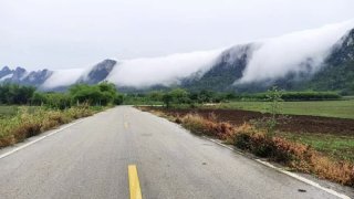 วินาทีเกิดปรากฏการณ์ธรรมชาติ หมอกไหล จากฝั่งไทยไปกัมพูชา
