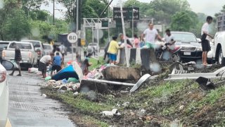 หนุ่มสุดงง เห็นชาวบ้านจอดรถขวางถนน วิ่งเก็บไส้กรอกหอบกลับบ้าน หลังรถบรรทุกไส้กรอกคว่ำ
