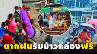 ลำบากแค่ไหนก็ต้องไป ชาวบ้านตากฝน รับข้าวกล่องแจก