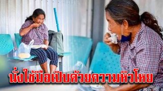 ภาพคุณป้า! รอรับข้าวแจก หลังได้รับ นั่งใช้มือกินด้วยความหิว