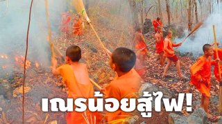 เกิดไฟป่าลุกลามขึ้นดอยที่วัดพระบาทผาหนาม ทำให้พระสงฆ์และเณร ต้องออกมาสะกัดไฟกันอย่างหนัก
