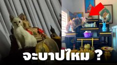 จะบาปไหมแมวชอบปีนบนหิ้งพระ บางทีก็งับเล่น แถมกินน้ำบนหิ้งด้วย ชาวเนตแนะนำทำใจง่ายที่สุด