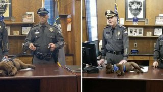 ว่าที่สุนัขตำรวจตื่นขึ้นมาเตรียมตัวแต่เช้าตรู่ จนเผลอหลับในพิธีสาบานตนของตัวเอง