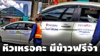 สาวติดกระดาษข้างรถ "หิวหรอคะ โบกได้เลย" มีข้าวฟรีจ้า หน้ากาก / น้ำด้วย ...