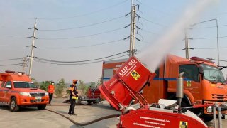 ปภ. ตาก สาขาแม่สอด นำรถยานยนต์ดับเพลิงฉีดหมอกน้ำ /โฟม เพื่อลดค่าฝุ่นละอองในพื้นที่