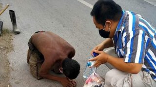 ชื่นชม! ชายเร่ร่อนนอนใต้สะพาน ทำตัวเองให้เป็นประโยนช์ต่อสังคมคอยเก็บกวาดถนนดายหญ้า