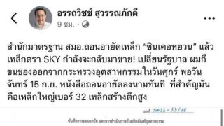 อรรถวิชช์ ฟาดเปลี่ยนรัฐบาลถอนอายัดทันที เหล็ก SKYY สร้างตึกสตง. เหล็กเบอร์ 32 กลับมาขาย ใช้สร้างตึกสูง