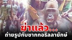กลุ่มอนุรักษ์เผยภาพชายติดอาวุธถ่ายรูปกับซากกอริลลายักษ์ที่ถูกยิงเสียชีวิตอย่างผิดกฎหมาย