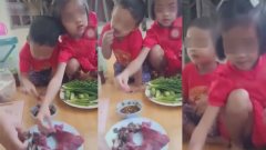 ผู้ปกครองให้เด็กกินเนื้อวิวดิบอย่างสนุกสนาน ชาวโซเชียลทนไม่ไหวถล่มยับ