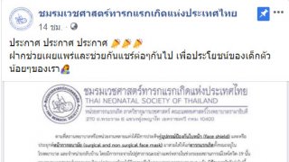 ชมรมเวชศาสตร์ทารกแรก แนะใส่แมสก์ให้ทารก เสี่ยงขาดอากาศหายใจ