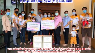 หจก.แม่สอดโชควิสูตรและหจก.จุฬาเอ็นจิเนียริ่ง พี.อาร์. บริจาคเงินรวม 600,000 บาท และเจลล้างมือ ให้โรงพยาบาลแม่สอดเพื่อป้องกันและสู้กับโควิด-19