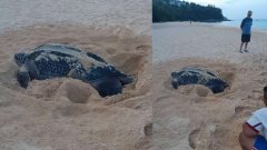 คนรักทะเลถูกใจสิ่งนี้ แม่เต่ามะเฟืองขึ้นมาวางไข่ที่หาดในทอน จ.ภูเก็ต